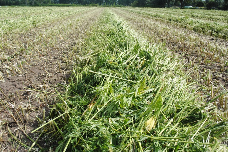 Het gemaaide gewas wordt voor twee tot drie weken op zwad gelegd, voor het optimale rottingproces.