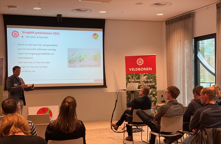 Dat veldbonen en uitdagend gewas is, benadrukte Overveld nog eens in deze bijeenkomst: “Dit gewas is een juffertje onderde akkerbouwgewassen. Veldbonen kennen een bloeiseizoen, waarbij vruchtzetting, het rijpen van de veldbonen, en vruchtdunning, het verwijderen van teveel bonen meespelen. Dit zijn aandachtspunten die over het algemeen niet meespelen in de akkerbouw, maar wel in de tuinbouw. Dit maakt het een uitdagend gewas.”