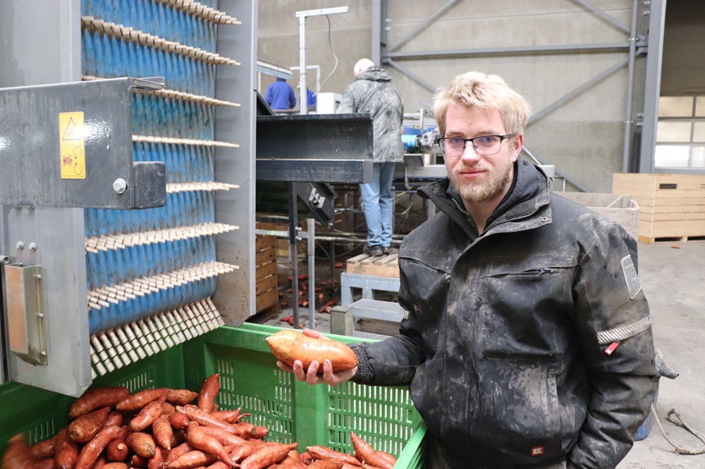 Akkerbouwer en zoete aardappelteler Thijs Koenraadt uit Espel zit in maatschap met zijn ouders en broer Joris. “Mijn broer en ik zitten in het proces van bedrijfsovername en richten ons vooral op de teelt en verwerking van zoete aardappelen. Mijn andere broer Stefan houdt zich vooral bezig met de afzet van dit product.” Al Holland en Schaap Holland. “Wij telen ook een aantal frietpootgoedrassen en zoete aardappelen zijn ook geschikt om frietjes van te maken.”
