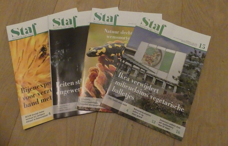 Het blad STAF is de moeite waard om eens door te nemen, het is niet enkel een factchecker maar ook een eyeopener, om maar in dezelfde termen te spreken. Het geeft zicht op veel onderwerpen van Ikea balletjes tot grondwatervervuiling. Een voorbeeld van deze laatste is dat het meetpunt voor grondwaterverontreiniging in de binnenstad van Nijmegen was geplaatst in een omheind veldje welke was aangewezen als hondenuitlaatplaats. Daarop werd de grondwaterverontreiniging van de landbouw bepaald. Op meer plaatsen is gebleken dat meetlocaties met forse normoverschrijdingen zich juist in stedelijke gebieden bevinden.