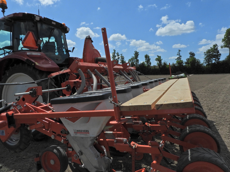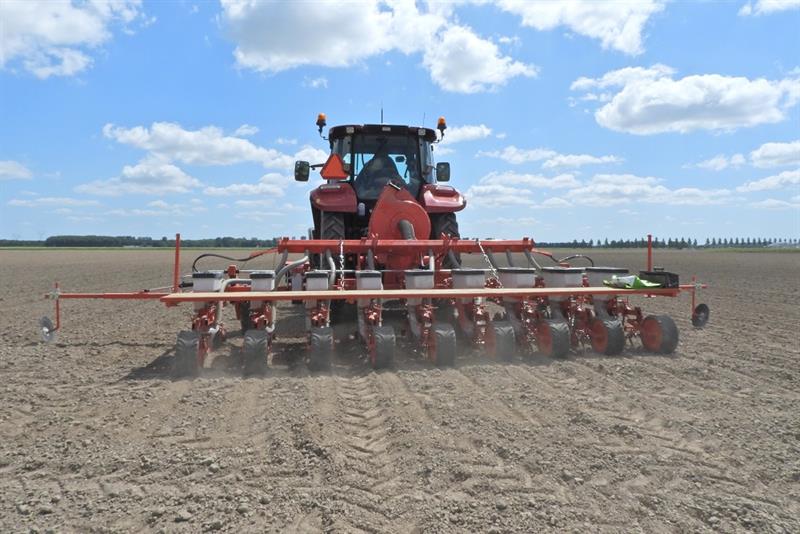 Maerman gooide het roer om, werd in 2013 biologisch akkerbouwer en richtte zijn pijlen op het telen van tulpen, krokussen, grasklaver, pootaardappelen, winterpeen, sperziebonen, suiker- en snijmaïs. “Op dit bedrijf in de Flevopolder, dat een totaaloppervlakte van 43 hectare heeft, wordt nu zeven jaar biologisch geteeld. Voor die tijd gebeurde er niet zoveel. Geen groenbemester, geen vaste mest op het land. Om de middelzware en 39 procent afslipbare kleigrond in een goede conditie te krijgen was er dus werk aan de winkel. Om toch een goede boterham te kunnen verdienen, ga ik zeer zorgvuldig om met de bodem. Ik ben geen fan van zware machines die hier veelvuldig in de polder rondrijden. De precisie van het loonwerkzaaien vind ik tegenvallen. In de Flevopolder is bovendien weinig concurrentie qua loonbedrijven en is goed personeel moeilijk te vinden. Ik ben toen gaan nadenken en in samenwerking met mechanisatiebedrijf Weevers uit Swifterbant hebben wij een zaaimachine kunnen samenstellen, opgebouwd en aangepast aan onze eigen wensen” legt Maerman uit.