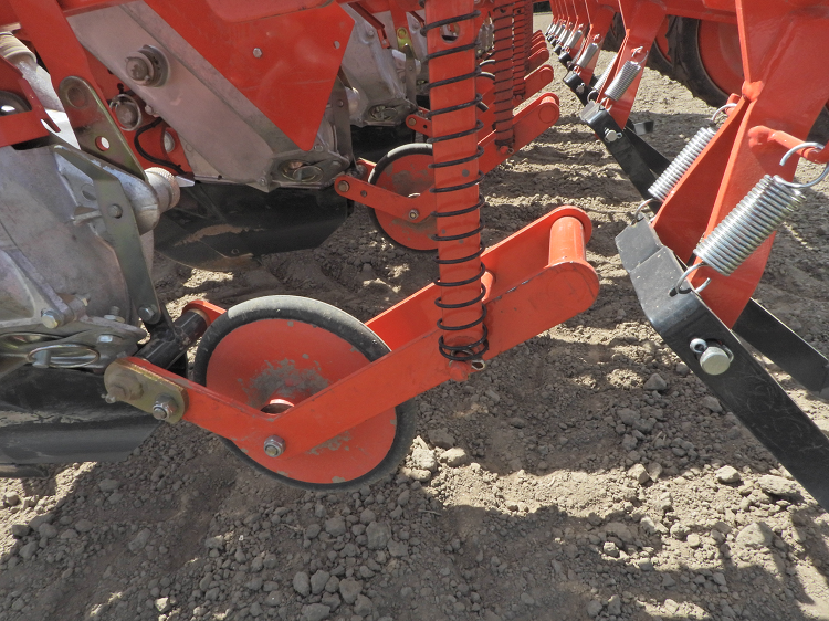 “Wij hebben probleemloos kunnen opstarten en zijn tevreden”, merkt Maerman op, “Toch wil ik nog enkele zaken wijzigen. Zo wil ik ter voorkoming van slippen de aandrijfwielen meer naar achteren en tussen de zaaielementen plaatsen. Ik denk dan dat ik meer druk krijg. De aandrukwieltjes zijn nu van rubber, maar bij vochtig weer plakt de kleigrond eraan. Dat moeten in de toekomst stalen wieltjes worden met een schraper erop. Tevens komt er achter de aandrukwieltjes nog een schoffeltje. Dat moet een centimeter boven het zaad het rijtje weer losmaken. De grond ligt dan wat fijner in het geval er een regenbui komt. Dan heb je minder kans op korstvorming.”