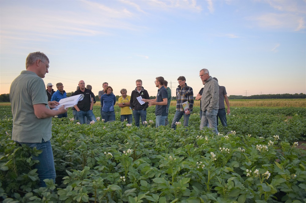 Voor het bezoek aan de demo-aardappelen benadrukt Peter Keijzer van het Louis Bolk Instituut het belang van resistentiemanagement. Er zijn maar zeven genen beschikbaar met weerstand tegen phytophthora. “Daar moeten we dus zuinig op zijn!” Een gedegen resistentiemanagement speelt daarbij een belang- rijke rol. “Dat betekent scouten, scouten en nog eens scouten. En aantastingen direct goed opruimen,” aldus Keijzer. Hij geeft aan dat risicospreiding kan helpen, door meerdere robuuste rassen met verschillende resistentiegenen naast elkaar te plaatsen.