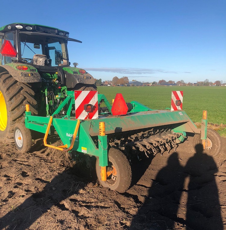 Met de KvickFinn, die Huyben vorig jaar via Agri Bio-Solutions op proef kreeg, heeft hij een schoffelcultivator waarmee hij het plantje met wortel en al naar boven haalt en bovenop de grond neerlegt. Niet voor niets wordt deze machine ook als onkruidmepper’ getypeerd. Met een oostenwind en zon droogt het zeebiesgras voldoende uit, is het idee. Het proberen waard, aldus de Brabantse akkerbouwer. “Dit werkt wonderwel. We zijn na het eerste jaar zeker 75 tot 80 procent van het zeebiesgras kwijt, er blijft altijd wel iets achter. Daarom moeten we dit voorjaar net voor ploegen nog wel een bewerking doen.”