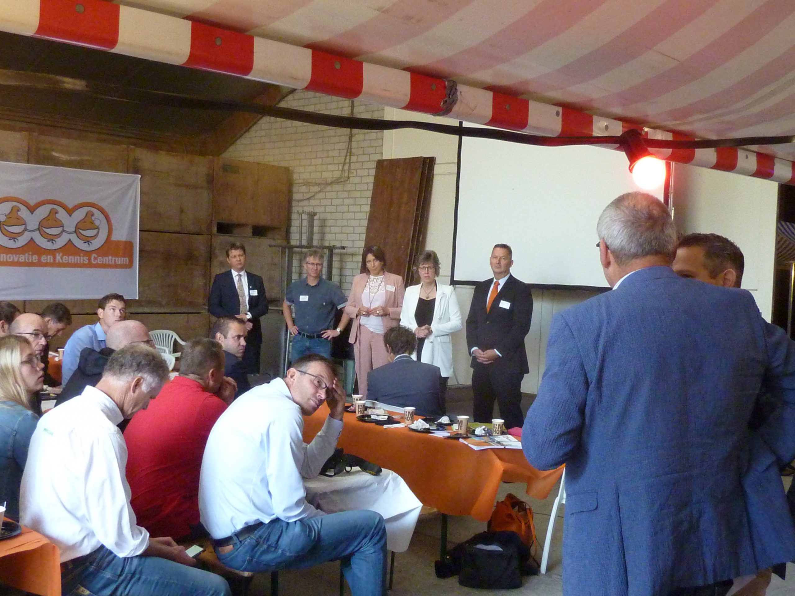 Tijdens het uienontbijt, dat traditioneel de opening vormt van de Uiendag waren diverse politici aanwezig. Daar kwam onder meer de weersverzekering aan bod. Ook weer een teken dat het thema leeft onder de uientelers. Proefboerderij Rusthoeve gaat zelf ook een aantal maatregelen doorvoeren: “Wij zitten in een gebied waarin niet zomaar beregend kan worden. Maar we gaan wel kijken naar mogelijkheden om de proeven meer te beregen, dan we nu kunnen. Zo gaan we peilgestuurde drainage nieuw leven in roepen, zodat we het proces kunnen omkeren zodat we water kunnen laten inlopen. Daarnaast gaan we de komende periode druk aan de slag om proeven binnen te halen waarbij goede waterbeheersing centraal staat. We willen daar niet alleen bekijken wat er mogelijk is met beregenen, maar ook het optimaal gebruikmaken van het aanwezige water. Daarbij kijken we ook naar de beschikbare technieken om het aanwezige water zo goed mogelijk te benutten, denk hierbij aan bijvoorbeeld drip-irrigatie.”
