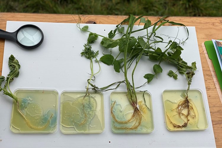 Op het demoveld steekt Roy Kuenen, Productmanager bij DSV zaden, verschillende groenbemesters uit. Dit brengt de theorie daadwerkelijk tot leven. “De rhizosfeer is als het ware de hotspot van het bodemleven. Micro-organismen zijn hier in de grootste aantallen aanwezig én het meest actief. Dit is dan ook de plek waar wortelexsudaten het best tot hun recht komen.”