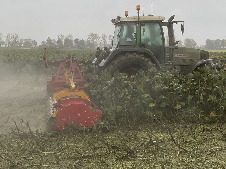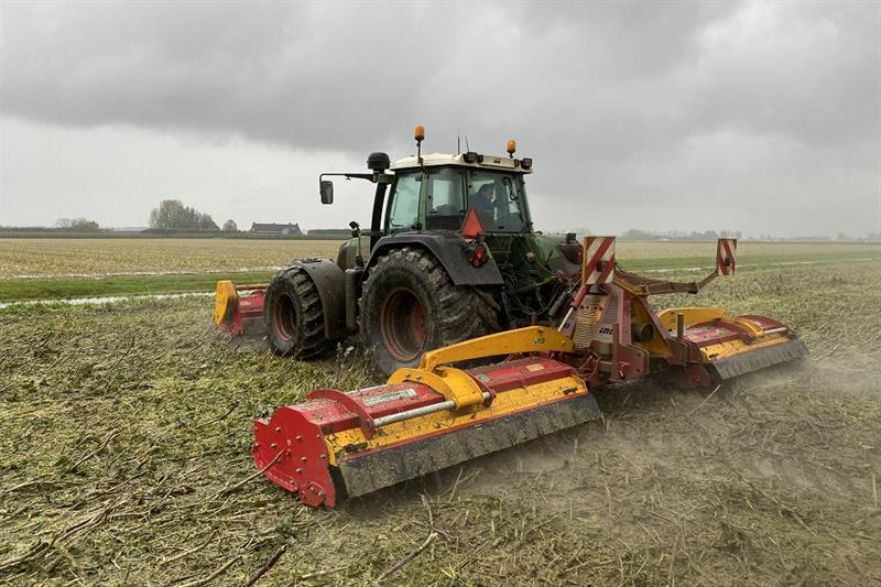 Visser maaide in het verleden met een voor- en achterklepel. In de zoektocht naar meer capaciteit struinde de teler het internet af en stuitte hij op een Youtube-filmpje van een triple maaier van het Sloveense INO. “Via Google zocht ik naar een Nederlandse importeur en kwam ik bij Landkracht Agri uit”, legt Hendrik Visser uit. Hij vergeleek verschillende maaiers. “Belangrijkste doel is het voorkomen van insporing in de groenbemesters. De klepelmaaiers van INO zijn licht en prijstechnisch ook interessant.”