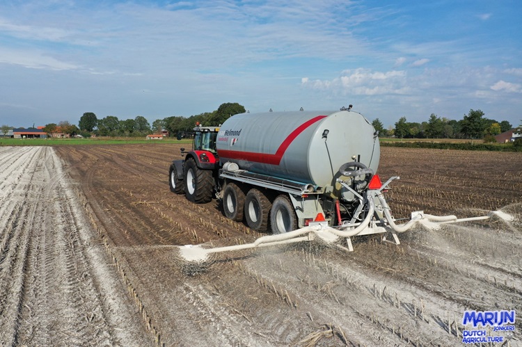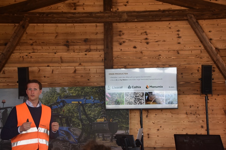 “Manumix ten slotte is Calhix op een andere manier toegepast. Hier brengen we dat samen met gewone mest. De algemene regel is dat je kalk en mest nooit mag mengen. Dit komt omdat er vroeger gebrande kalk gebruikt werd en in combinatie met mest kwam er dan ammoniak vrij. En dat willen we niet. Maar met krijt kan dit wel. Je hebt zelfs het omgekeerde effect, namelijk minder ammoniak-uitstoot. Hiernaar loopt al drie jaar onderzoek en de resultaten zijn goed. Het is makkelijk te mengen in de put of aalton en je kan bemesten en bekalken in één werkgang. Je kan heel efficiënt de pH optimaliseren door een beetje Manumix bij je mest te doen.”