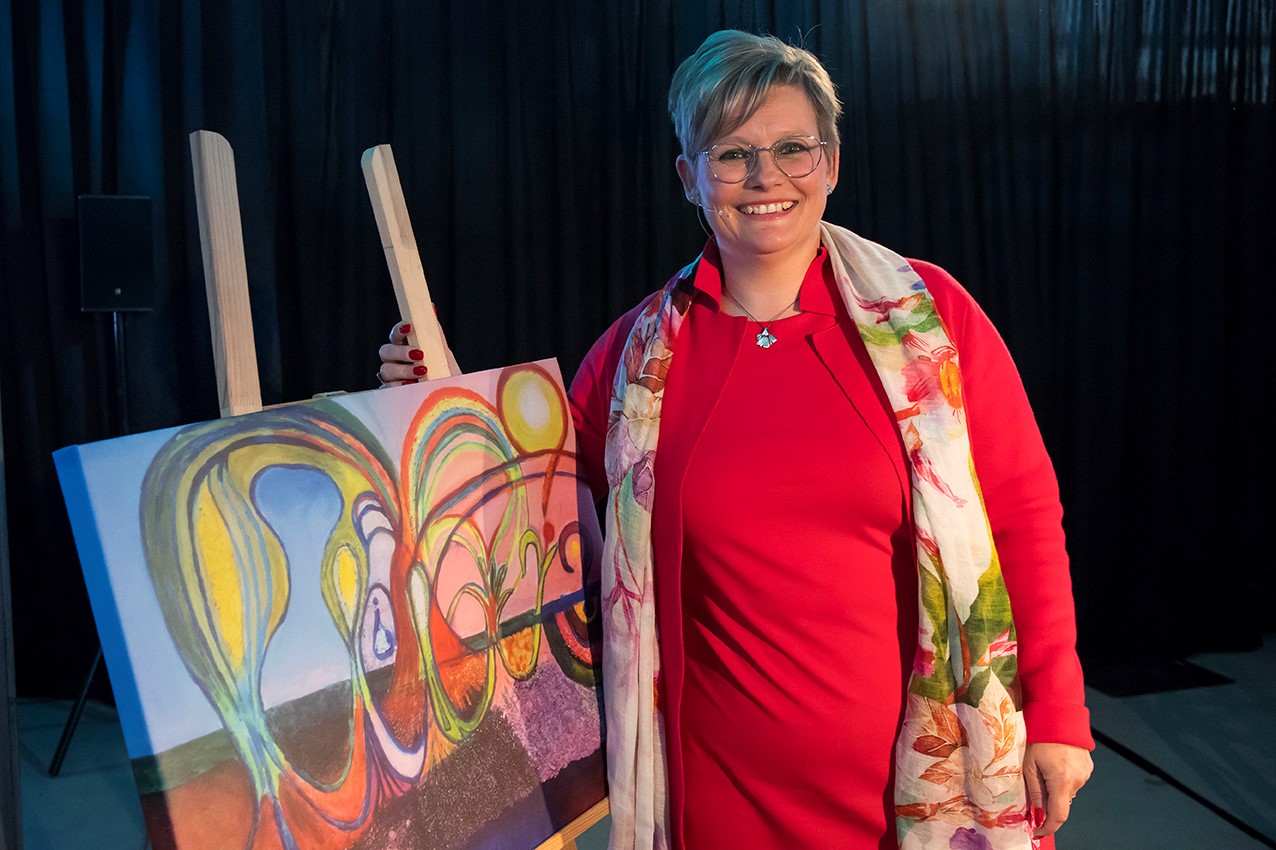 Judith gebruikte een schilderij van Bruce Ball en Tom Henry uit 2018 als leidraad bij haar verhaal. Het canvasdoek stelt een zijaanzicht van een bodemprofiel voor als het geleidelijk wordt uitgeput door verlies van voedingsstoffen door gassen en uitspoeling, verlies van opgeslagen water en het dunner worden van de bovengrond als gevolg van landbouwactiviteiten en klimaatverandering.