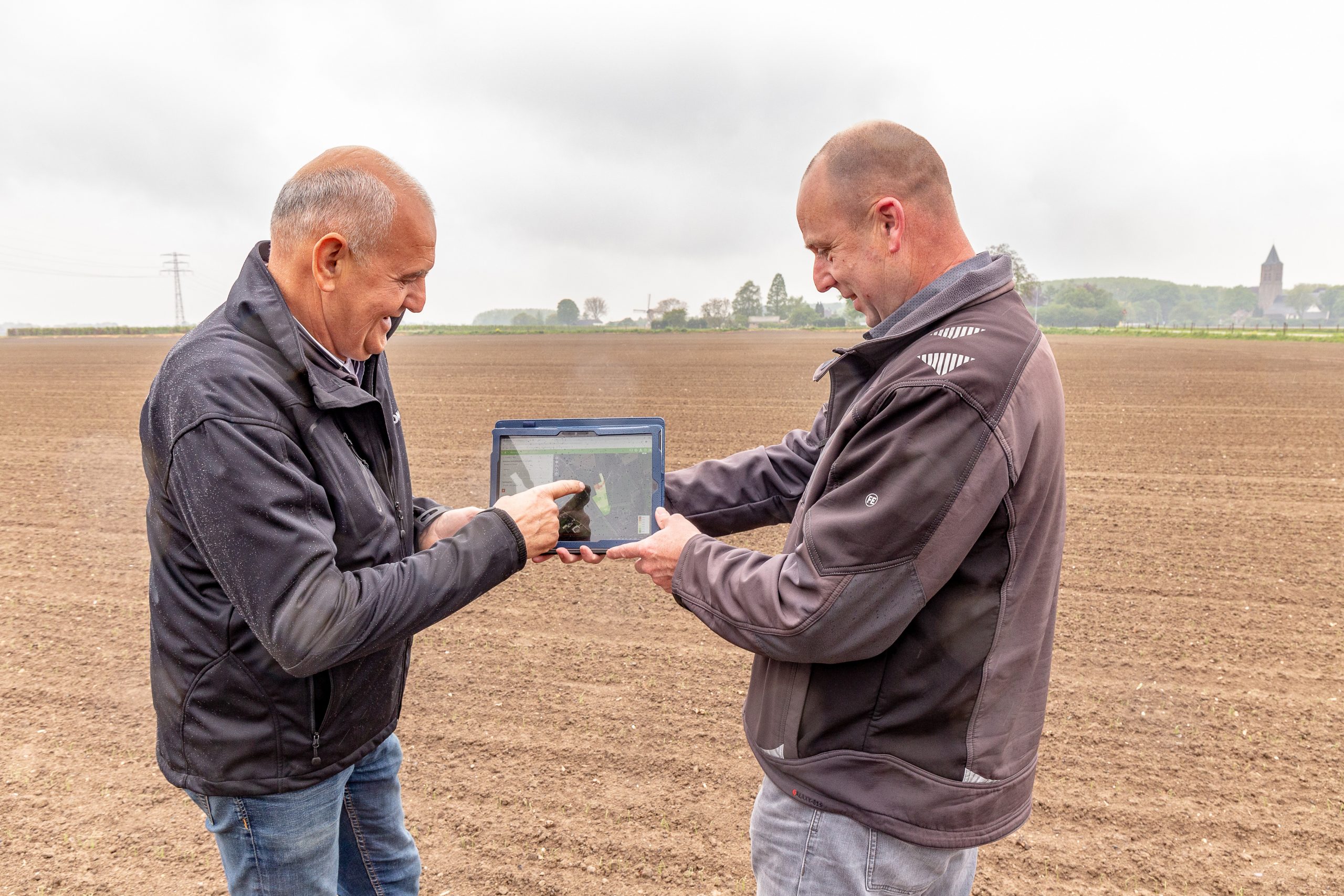Van Iperen maakt op basis van openbare data, zoals satellietopnamen en hoogtekaarten de zogenaamde potentiekaart. Daarop zijn duidelijk de verschillen te zien tussen hoog potentiële en laag potentiële delen in de percelen. Op basis van die kaart worden de zogenaamde taakkaarten gemaakt. Dick: “In het verleden probeerden we door extra bemesting de lichtere grond meer te laten renderen. Maar in de praktijk levert dat heel weinig op. Bij precisielandbouw doen we het precies andersom. Op de lichtere grond planten of zaaien we ruimer en brengen we minder meststoffen op. Op de hoog potentiele delen staat alles dichter bij elkaar en bemesten we extra. Dat geeft veel meer rendement.”