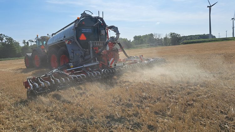 De 9 meter brede Quadro Disc van loonbedrijf Ten Hove uit Kamperveen was gemonteerd aan een 22 kuubs Garant Kotte tank met hondegang en drukwisselsysteem. De combinatie werd getrokken door een Fendt 927 Vario en voerde ook bemestingen uit met giften van 20 en 40 kuub per hectare.