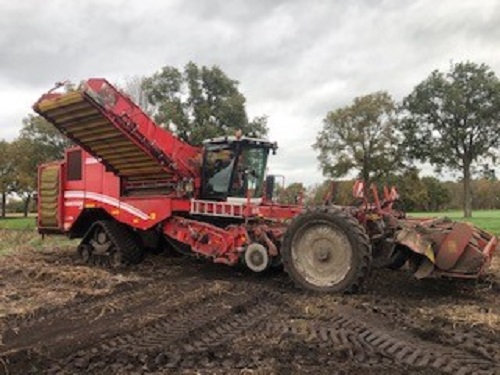 Na jaren met een getrokken bunkerrooier te hebben gerooid, stapte Maatschap Vos-de Boer uit het Nederlandse Dalerveen in 2019 vanwege een groeiend areaal aardappelen over op een zelfrijdende aardappelrooier. “Daarna had ik niet meer op wielen gerooid tot de start van dit seizoen”, zegt medewerker Frank Weerink. Na de getrokken rooier volgde in 2019 namelijk een Grimme Varitron 470 Platinum edition met af fabriek een rupsonderstel eronder. Die werd na seizoen 2020 ingeruild op een demomachine: een Grimme Varitron 470. Vanwege de forse meerprijs van een rupsonderstel en de toenemende kilometers op de weg, kozen Roelof Vos en Weerink voor een uitvoering op wielen en schaften ze bij Zuidberg een set 76 centimeter brede rupsen aan.