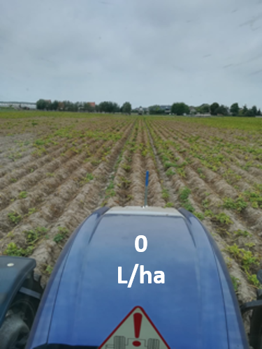 Proef twee lag bij teler Dirk Van Ginhoven, die samen met zijn vrouw het akkerbouwbedrijf Van Ginhoven-Verheyen runt in het Belgische dorpje Ravels (bekend van de landbouwbeurs). Van Ginhoven paste Humifirst toe in de aardappelen. Hyndrikx: “Ook daar waren de (opkomst)resultaten spectaculair goed. We hebben gewerkt met vier plots: een onbehandelde referentiestrook, een strook met vijfentwintig liter Humifirst en vijftig liter Humifirst (aanbevolen hoeveelheid) en honderd liter. Dat laatste is eigenlijk overdreven veel, maar in een jaar zoals 2018 geen overbodige luxe.”