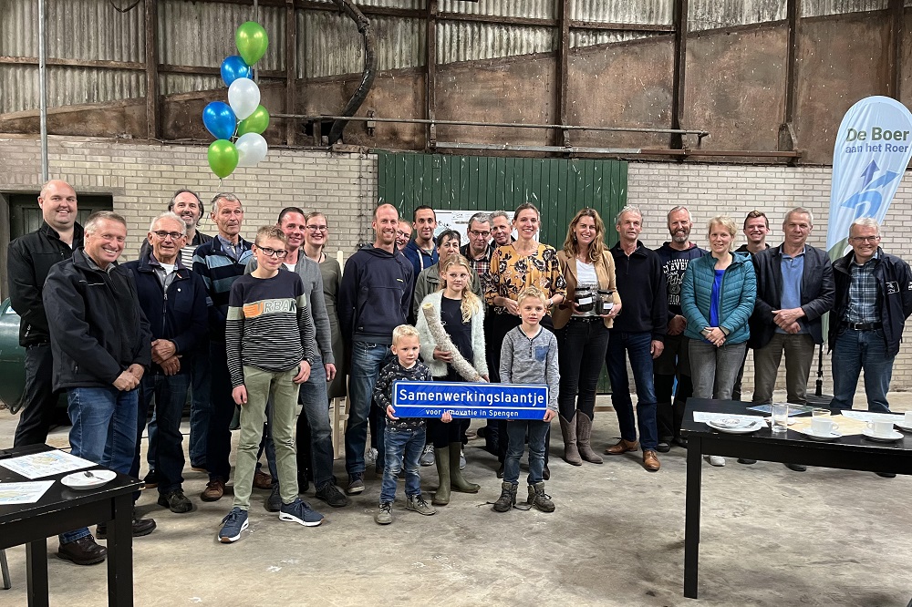 “Deze proef laat zien wat voor kennis en expertise er in de agrarische sector zit die we echt kunnen gebruiken. Juist die kennis uit de polder kunnen we benutten voor nieuwe opgaven zoals waterkwaliteit en stikstof. Het gebiedsgericht werken is hier al uitgevonden”, aldus gedeputeerde Mirjam Sterk. Ze overhandigde een bord dat de kracht van innovatie en samenwerken symboliseert.