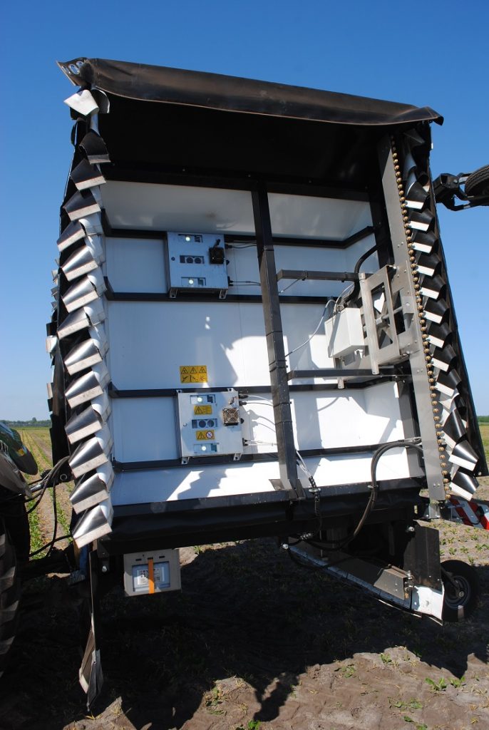 Het gewicht van de machine is negenhonderd kilo. Voor de trekker hangt schoonwater en de mix tank van zevenhonderd kilo. De spotsprayer wordt elektrisch aangedreven, via de aftakas. “We werken nu met een capaciteit van vier hectare per uur. Dit betekend een snelheid van ruim zeven kilometer per uur. Gps is niet vereist omdat met de camera wordt bepaald of de machine stuurt en wat de snelheid is.”