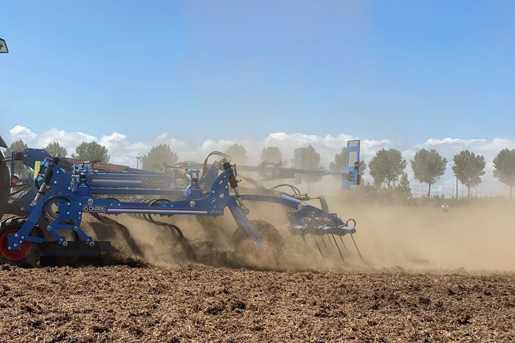De URASI precisiecultivator van Carré beweegt met hoge rijsnelheid over het perceel. De werksnelheid ligt tussen de acht en zestien kilometer per uur. Vandaag rijdt de machine rond de zestien kilometer per uur. Het is dan ook niet vreemd dat de naam van deze triltand-cultivator is afgeleid van het snelste renpaard van Frankrijk.