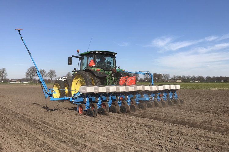 Eveneens is gelijk met het zaaien van een aantal gewassen een gedeelte van de rijen bespoten met herbiciden om daarna te kunnen schoffelen tussen de rijen.” Gelijktijdig met het zaaien exact bemesten en herbiciden toepassen betekent veel minder bodemdruk volgens de Dussense akkerbouwer. “En doordat je niet met al die machines het land op hoeft, scheelt het ook nog eens arbeidsuren.”