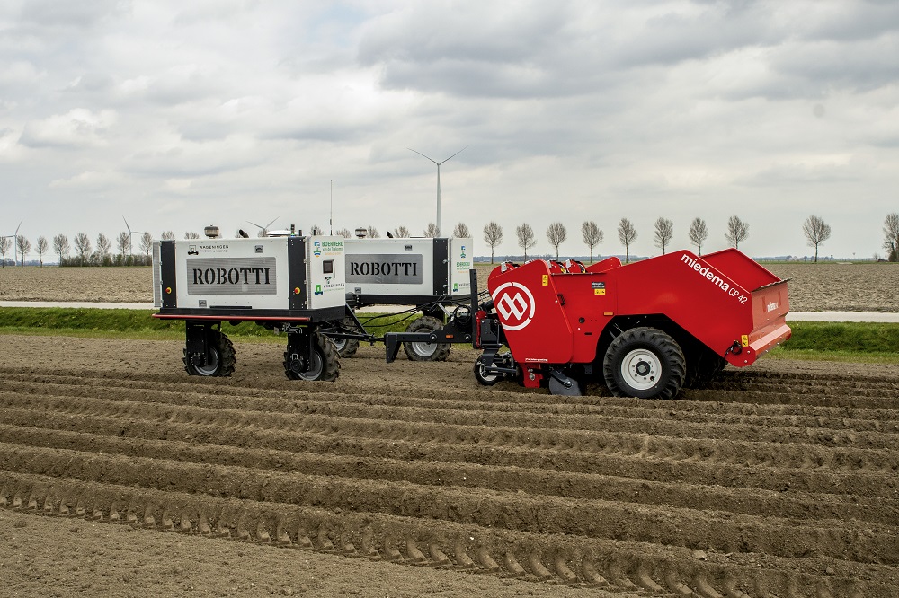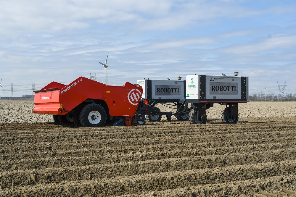 Voor hun eerste gezamenlijke project zal het autonome Robotti-platform van Agrointelli worden gecombineerd met een 4-rijige Miedema CP 42 bekerpootmachine. Deze pootmachine zal een eenvoudige, mechanisch aangedreven machine zijn. Op die manier kan worden nagegaan welke automatiseringen en optimaliseringen nodig zijn bij het poten met een robot. De autonome aardappelpootcombinatie plantte onlangs op de demonstratievelden van Potato Europe ’21. Eerder demonstreerde Robotti samen met Wageningen University & Research in Lelystad al het plaatsspecifiek spuiten met betrekking tot aardappelen.