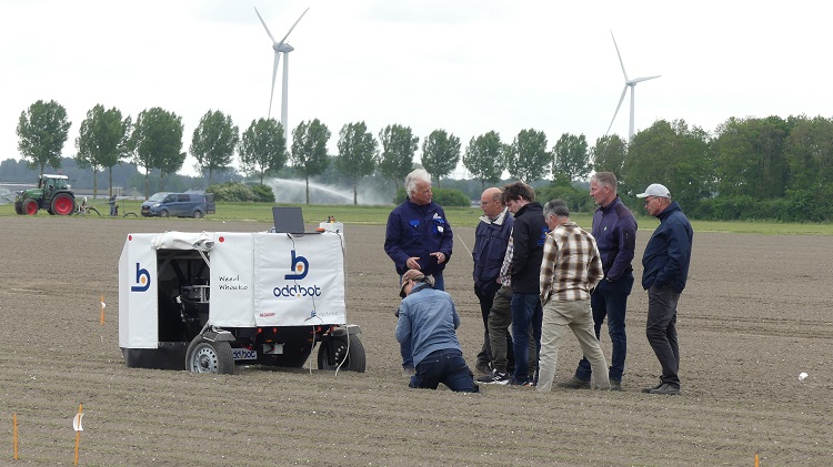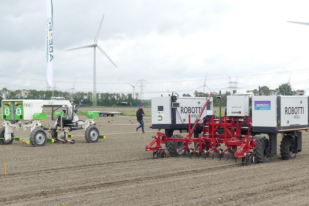 Tijdens de Future Farming & Food Experience was in het veld een uitgebreid programma futuristische werktuigen actief, van prototypes tot machines met al de nodige ervaring. En van dopaangestuurde spuitmachines tot geavanceerde schoffelmachines. Van deze laatste demonstreerde Abemec twee varianten, de Franse Naio is een elektrisch aangedreven autonoom werkende werktuigendrager, in dit geval een schoffelmachine die volledig zelfstandig zijn rondjes reed. Hij schoffelde op gps-rtk van nul tot twee centimeter nauwkeurig met cameragestuurde schoffels. Met zijn vier accu’s kan hij acht uren werken, maar als optie zijn twee extra accu’s leverbaar zodat hij tien uren kan vol maken. De Deense Robotti 150 D is een dieselaangedreven voertuig van 75 pk met een hef van een trekker en daardoor ook geschikt voor grotere werktuigen. Deze werkt evenals de Naio op gps met camera-gestuurde schoffels.