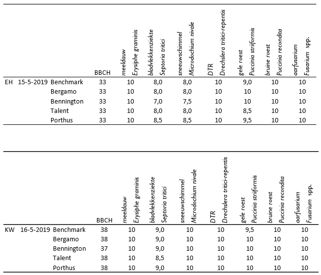 De waarnemingen zijn gedaan in een reeks rassen met verschil in resistentieniveau. De cijfers zijn afkomstig van de meest recente Rassenbulletins of, bij het ontbreken van informatie ervan, uit andere veldproeven. De waarnemingen zijn gedaan in een gewas waarin geen ziektebestrijding heeft plaatsgevonden.