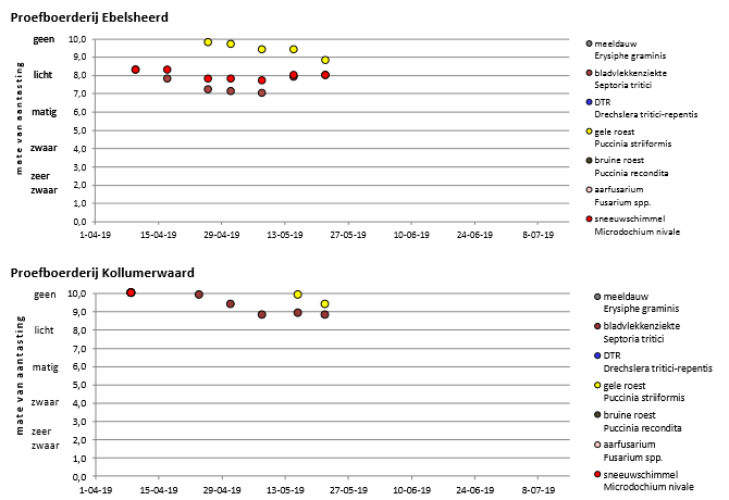 De graanziektebarometer is een weergave van het verloop van aantasting van de meest voorkomende ziekten in wintertarwe gedurende het groeiseizoen. De aantastingen worden wekelijks bepaald op de proefboerderijen Ebelsheerd (EH) en Kollumerwaard (KW).