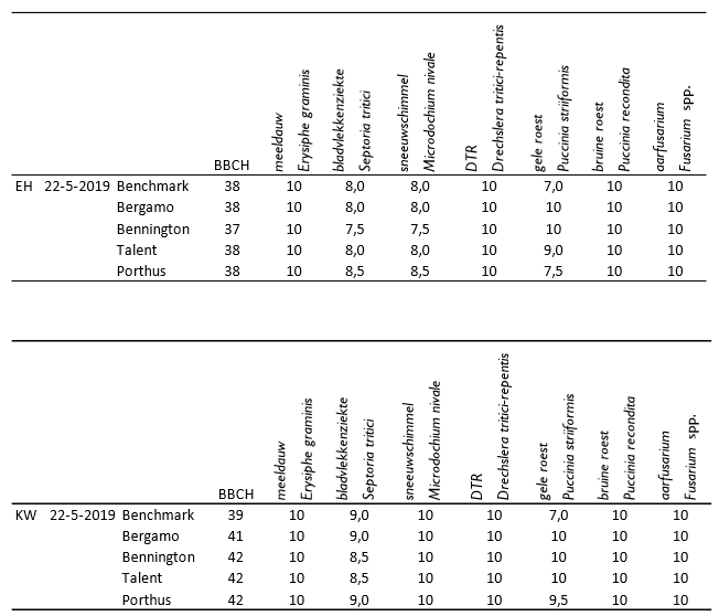 De waarnemingen zijn gedaan in een reeks rassen met verschil in resistentieniveau. De cijfers zijn afkomstig van de meest recente Rassenbulletins of, bij het ontbreken van informatie ervan, uit andere veldproeven. De waarnemingen zijn gedaan in een gewas waarin geen ziektebestrijding heeft plaatsgevonden.