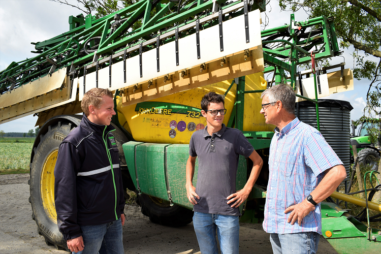 Akkerbouwer Anton de Wit (rechts) en zoon David (midden) werden door CZAV-adviseur Daniel Westerbeke (links) op de hoogte gesteld van de werking van Zorvec.
