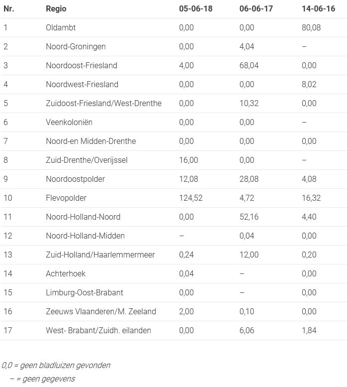 Bij de derde afklop zijn er weer virus overbrengende bladluizen gevonden. Er zijn wel regionale verschillen. Vooral in de Flevopolder zijn er veel bladluizen gevonden.