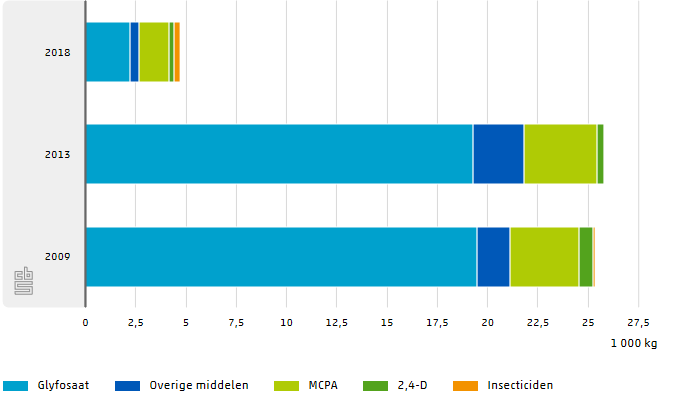 Overheidsinstellingen maken veel minder gebruik van glyfosaat, ook wel bekend onder de merknaam Roundup. In 2018 werd er voor 2 219 kilogram aan glyfosaat ingezet in opdracht van Nederlandse overheidsdiensten. Dat is bijna 90 procent minder dan in 2013. In dat jaar werd er nog 19 307 kilogram gebruikt. Toen was chemische bestrijding van onkruiden op verhardingen nog toegestaan.