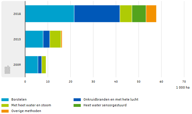 In 2013 besloeg het areaal verhardingen waarop gemeenten chemische bestrijdingsmiddelen gebruikten nog bijna 22 duizend hectare. Nu bestrijdingsmiddelen daar niet meer zijn toegestaan was dat oppervlakte in 2018 nihil. Er wordt steeds vaker naar alternatieve onkruidbeheersmethoden zoals borstelen of branden gegrepen. Ook de bestrijding met heet water of stoom neemt toe. De methoden worden met sensorsturing steeds preciezer.