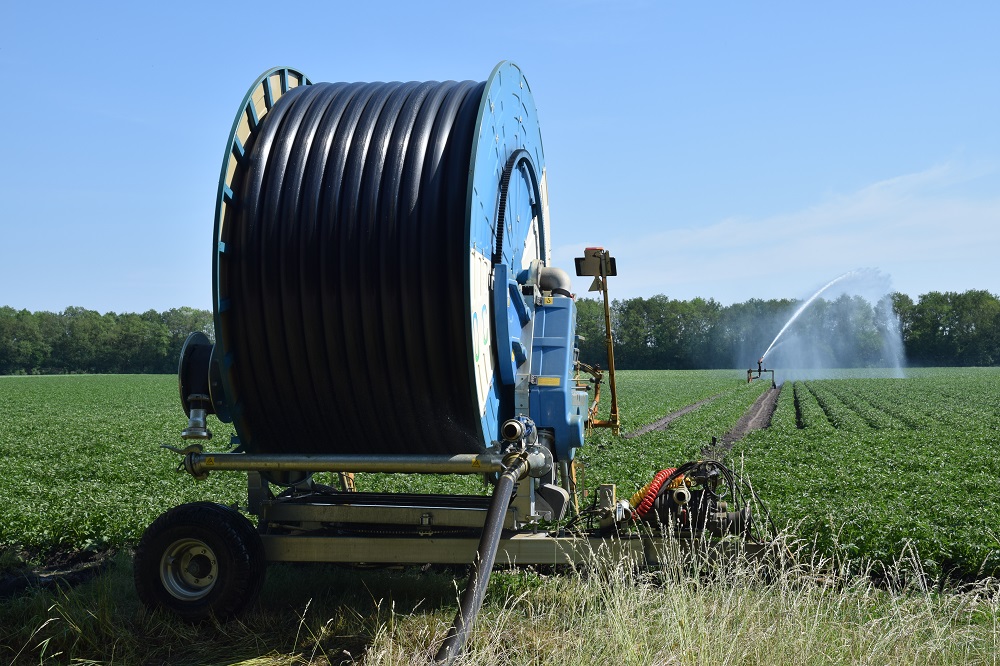 Het akkerbouwbedrijf in Zeijen maakt nu gretig gebruik van een haspel met waterkanon. Niet alle percelen van Emmens kunnen worden beregend. In totaal is er de mogelijkheid om 45 hectare in droge tijden van water te voorzien. Met elektrisch beregenen bespaart het akkerbouwbedrijf dieselkosten. De verplaatsing van water gaat via bronnen, waardoor er ook geen gesleep met buizen is. In het beekdalgebied bij Zeijen wordt geen gebruik gemaakt van oppervlaktewater. Hierdoor is er bijvoorbeeld ook geen dreiging van bruinrot. “Het enige is dat het grondwater ijzerhoudend is en qua temperatuur wel erg koud. Dit heeft in zekere zin ook invloed op de beslissing voor het moment van beregenen, het liefst kiezen we niet voor een stress- situatie.”