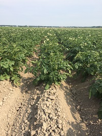 Ondanks het droge weer van de afgelopen dagen is zo’n acht tot tien centimeter onder de top van de aardappelrug toch wat vochthoudende grond te bespeuren. Eens in de vier tot vijf jaar laat Jan Willem bodemmonsters nemen om de exacte structuur van de grond onder de loep te nemen. Al met al is hij zeer positief over de opbrengsten die hij de laatste jaren heeft kunnen realiseren. Ik had het afgelopen jaar 53 ton netto betaalde aardappels, ik mag zeker niet mopperen. De samenwerking met de twee andere partners van de V.O.F. heeft hier zeker toe bijgedragen.