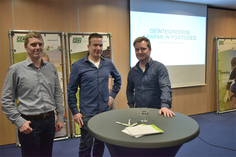 Lein de Visser nam de bezoekers van de studieavond voor de pauze mee in de visie van het CZAV op virussen in het algemeen en legde daarbij de nadruk op dat de virusdruk hoog is. De Visser: “Bij een goede virusbeheersing in pootgoed gaat het om een totaalplaatje van bodemgezondheid en plantgezondheid. Virussen zijn een groot probleem en zorgen voor een verlaging in de nacontrole door NAK. Telers zijn gewend om gewasbescherming en bemesting los van elkaar te zien, maar we moeten als pootgoedsector toe naar een geïntegreerde aanpak. Want het totaalplaatje moet kloppen om hoogwaardig pootgoed af te kunnen leveren. De gereedschapskist van gewasbeschermingsmiddelen wordt steeds leger en daarom wordt een gezonde bodem nog belangrijker.”