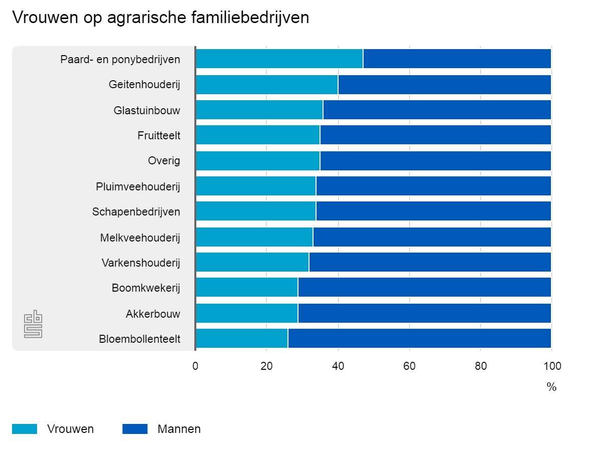 In Nederland waren in 2017 –volgens de laatste landbouwtelling- 170 duizend personen regelmatig werkzaam in de landbouwsector. Van alle vrouwen die werkzaam waren in de landbouw werkten 8 op de 10 op een familiebedrijf. In totaal waren er vorig jaar ruim 138 duizend personen op familiebedrijven werkzaam, waaronder 46 duizend vrouwen. Van de vrouwelijke arbeidskrachten op familiebedrijven werkt 55 procent gemiddeld 20 uur per week of meer.