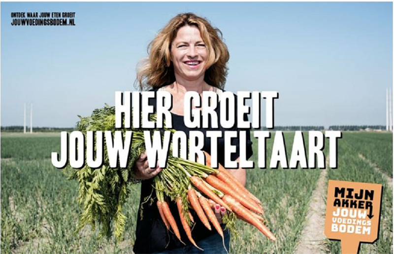 "Het doel van de campagne is om mensen in de stad te verbinden met wat er gebeurt op de akkers van Nederland", zegt Dirk de Lugt, voorzitter van Brancheorganisatie Akkerbouw. Veel mensen weten niet waar hun eten precies vandaan komt of wat er voor nodig is om hun eten te produceren. Met de campagne 'Mijn akker, jou voedingsbodem' (27 juni tot 11 juli), willen we hier verandering in brengen". Het zijn dan ook de akkerbouwers zelf die trots op 30 meter hoge billboards langs verschillende snelwegen staan. Zij spelen ook de hoofdrol in de campagnevideo en zijn aanwezig op social media via #jouvoedingsbodem. De verhalen van de deelnemende akkerbouwers zijn te vinden via jouwvoedingsbodem.nl