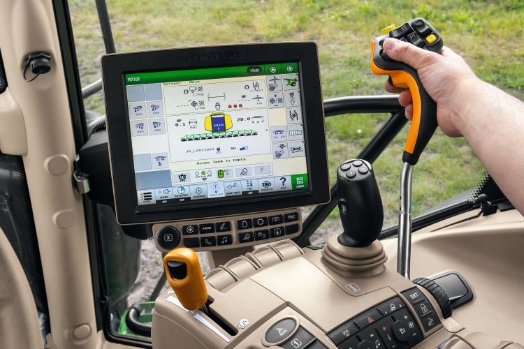 De veldspuiten worden geleverd met een nieuwe joystick. “Ergonomisch en gebruikersgemak zijn de kernwoorden. Bovendien is alles Isobus-compatible.” De data wordt wireless verzameld en naar het John Deere operation center verstuurd.
