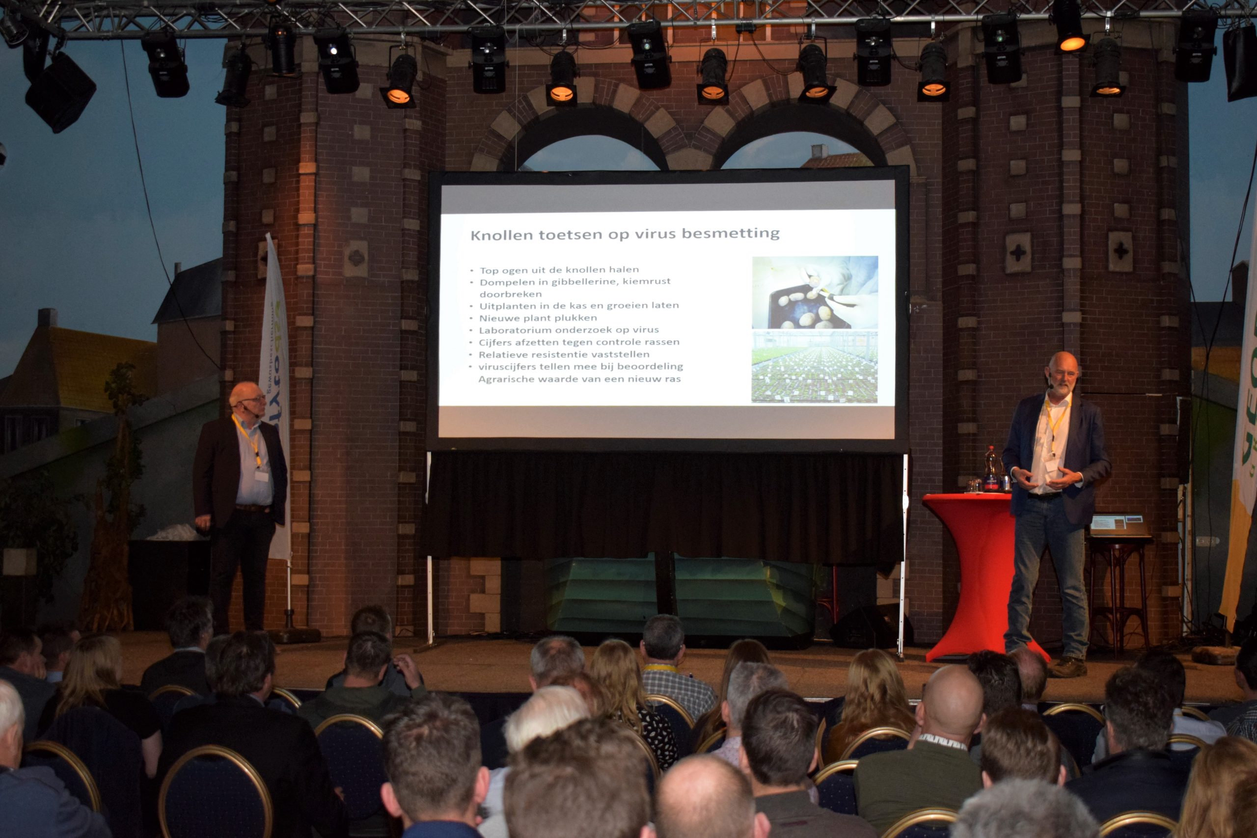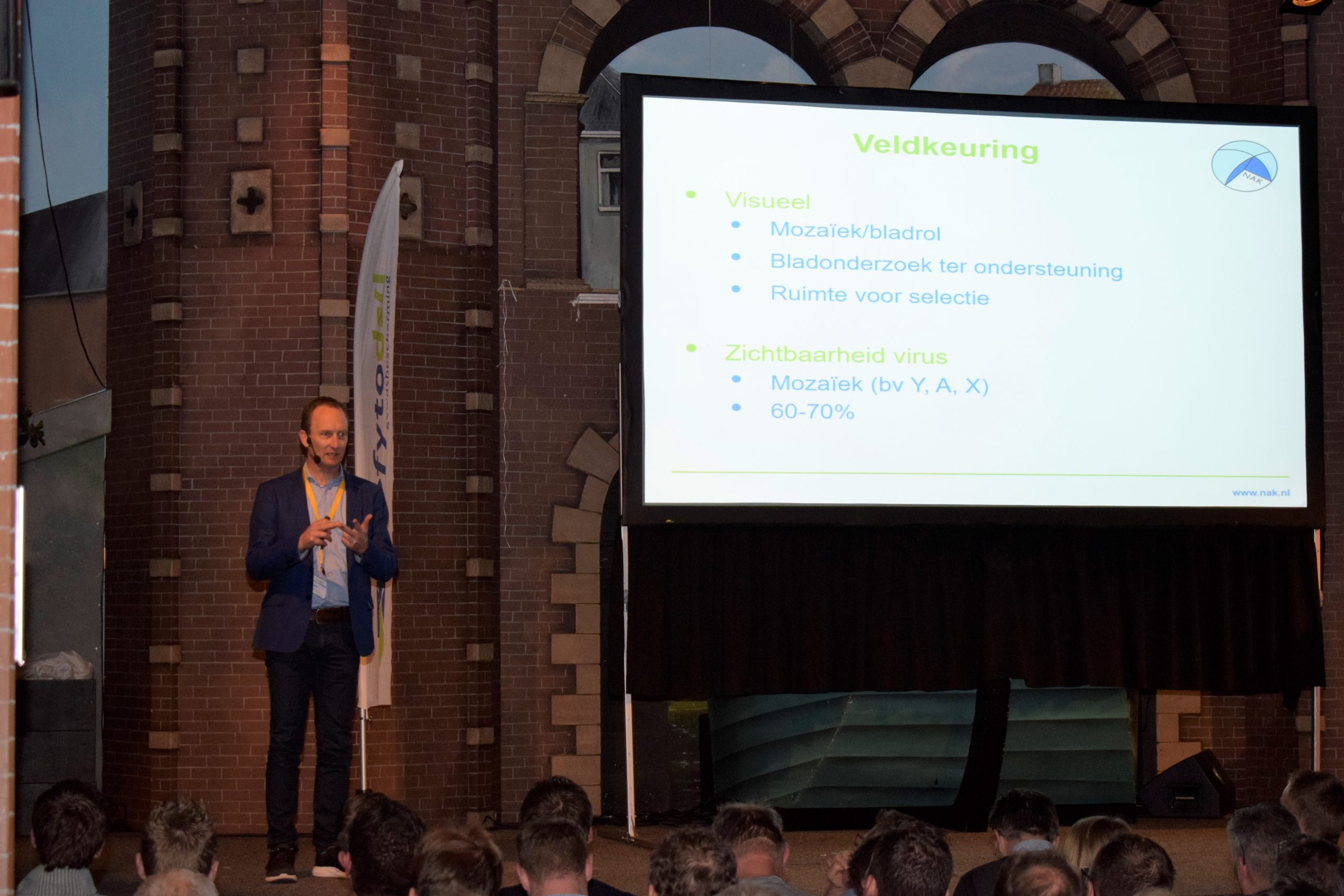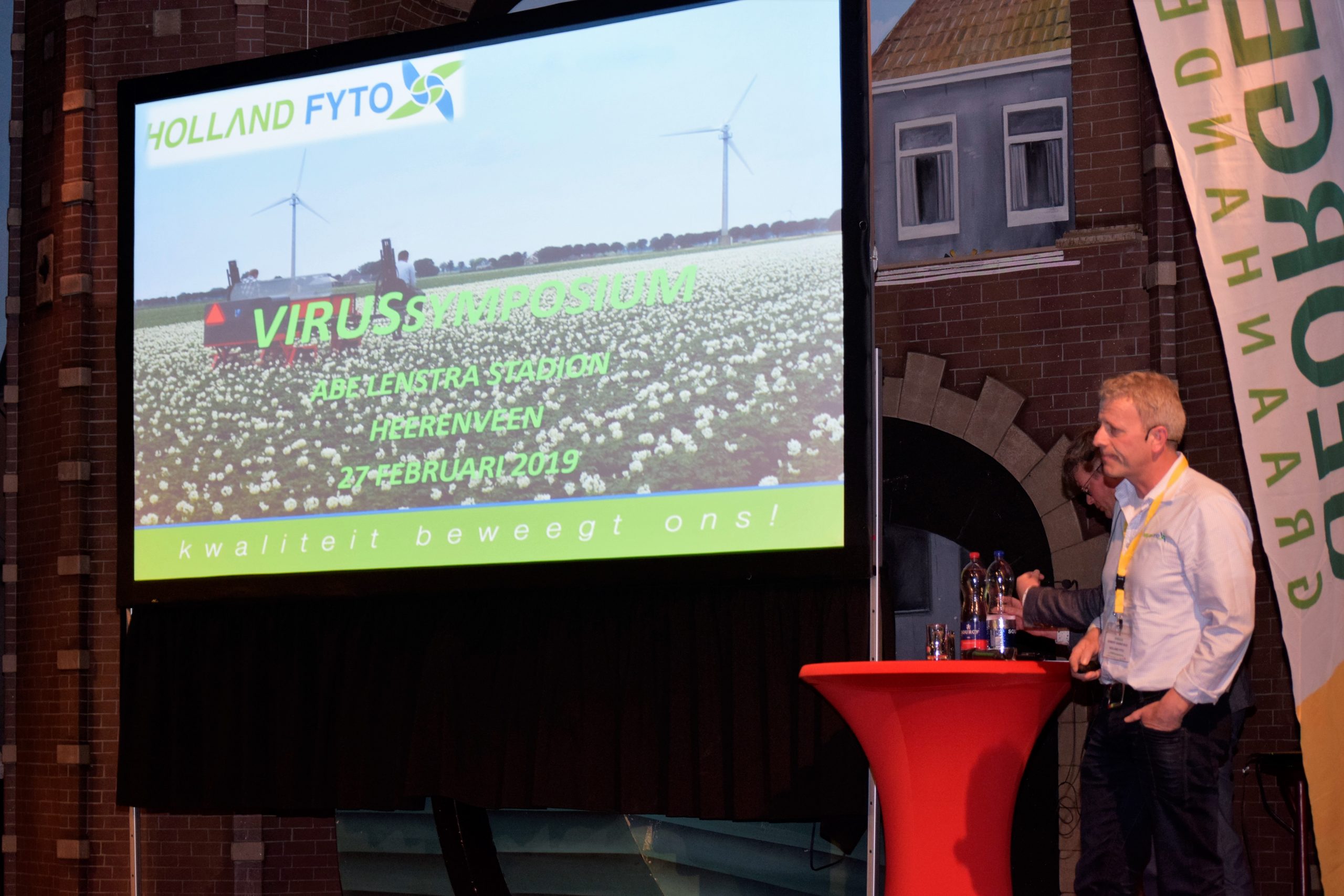 De goed gevulde zaal kreeg vervolgens van Agrico-woordvoerder Douma nog een belangrijke boodschap mee naar huis: “Voer de loofvernietiging op tijd uit, want daar leg je de basis voor hoogwaardig pootgoed. Johan Cruijff zei ooit ‘wie een sprintje moet trekken, is te laat vertrokken’ en dat geldt ook hiervoor”, besloot Douma geheel in de stijl van het SC Heerenveen-stadion zijn betoog op het speciaal voor akkerbouwers georganiseerde virussymposium.