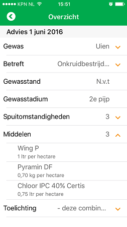 Onze akkerbouwvertegenwoordigers komen regelmatig bij onze klanten langs om bedrijfsspecifiek teeltadvies geven. Via de Mijn Iperen app kunnen ze direct op het bedrijf per gewas of perceel hun advies op maat opstellen. Denk hierbij aan de gewasstand en het gewasstadium, welke middelen er ingezet moeten worden en onder welke omstandigheden. Alles wat u als teler moet weten vindt u terug in dit advies. Zodra de vertegenwoordiger het advies verzendt, ziet u dit terug in de app. Ook ontvangt u een mail met het advies in uw inbox. Zo heeft u altijd alle benodigde teeltinformatie bij de hand!