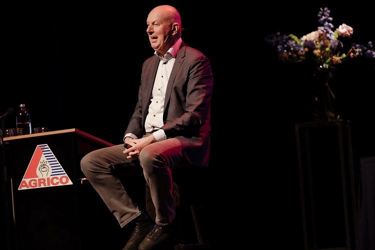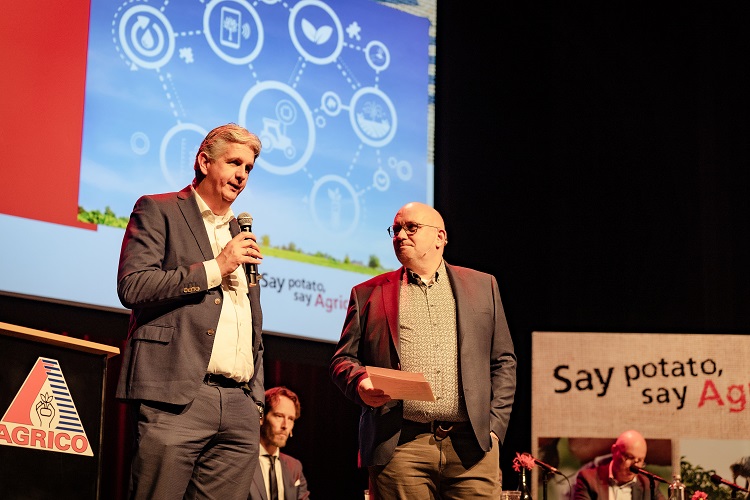 Voorzitter Adrie Vermeulen trapte de centrale ledenvergadering af met een kort interview met de nieuwe COO van Agrico, Mark Zuidhof. Samen met Jan van Hoogen zal hij tot 1 januari 2024 de directie van Agrico vormen.