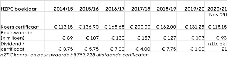 Twee keer per jaar, in mei en november, organiseert HZPC een certificaathandelsdag voor aangesloten (oud)pootgoedtelers, kwekers en medewerkers van HZPC Holding B.V. De aan- en verkoop van certificaten verloopt via een online platform en de beursdag wordt door een bank begeleid. De prijs kan per beursdag maximaal tien procent stijgen of dalen. De eerste certificaten werden in het boekjaar 1999/2000 verhandeld tegen en prijs van 24 euro. De eerst volgende beursdag is op vrijdag 7 mei 2021.
