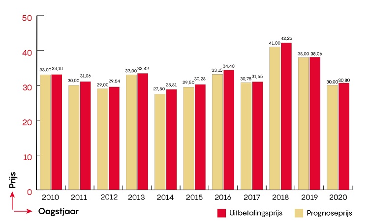 De uitbetalingsprijs voor pootgoedtelers van HZPC Holland voor de oogst van 2020 is uitgekomen op 30,80 euro per 100 kilo. Een prijs die iets boven de prognoseprijs van 30 euro uitkomt die afgelopen voorjaar is gecommuniceerd. Een resultaat waar HZPC na een bewogen seizoen tevreden mee is. Gezien de uitdagingen waarmee de aardappelveredelaar kampt door de coronacrisis.