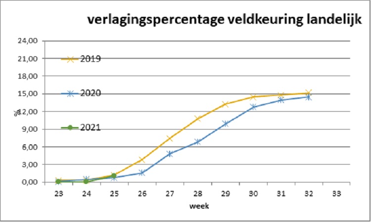In de tabel hieronder zijn de oorzaken van de verlagingen zichtbaar in vergelijk met de afgelopen twee jaar. Bacterieziek is momenteel de oorzaak van 62 procent van de verlagingen. Verlaging op virus komt tot nu toe in tien procent van de percelen voor.