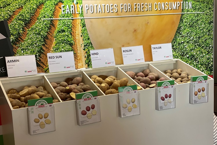 Dit jaar presenteert Agroplant maar liefst zeven nieuwe aardappelrassen. De overname van De Nijs bracht vijf nieuwe rassen in de lijst van Agroplant: Hind, Armin, Red Sun, Roslin en Taylor. “Hind heeft de grootste verwachtingen. Het geeft een hoge opbrengst en is een mooi sterk ras, ook onder hoge temperaturen en droogte”, vertelt Gerard Schenk, Product Manager bij Agroplant. “Hind is multifunctioneel inzetbaar op zowel de traditionele markt en als frietras. Tevens is het laag in stikstofbehoefte.” Red Sun en Roslin zijn beide roodschillige rassen, die dienen als tafelaardappel of op de traditionele markt. Het zijn vroege rassen, die uitermate geschikt zijn voor een mediterraan klimaat. Armin heeft uniform lang ovale knollen, die als tafelaardappel tot zijn recht komt. Taylor is net in de registratie. Goede bewaarbaarheid, een hoog droge stofgehalte en gemakkelijke verwerking maken dit ras geschikt voor de chipsproductie.