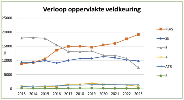 Verloop oppervlakte veldkeuring