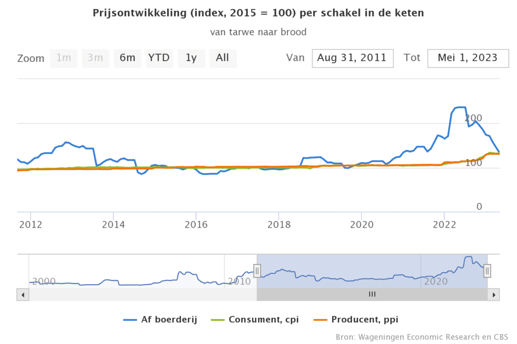 Ontwikkeling van de brood- en tarweprijs