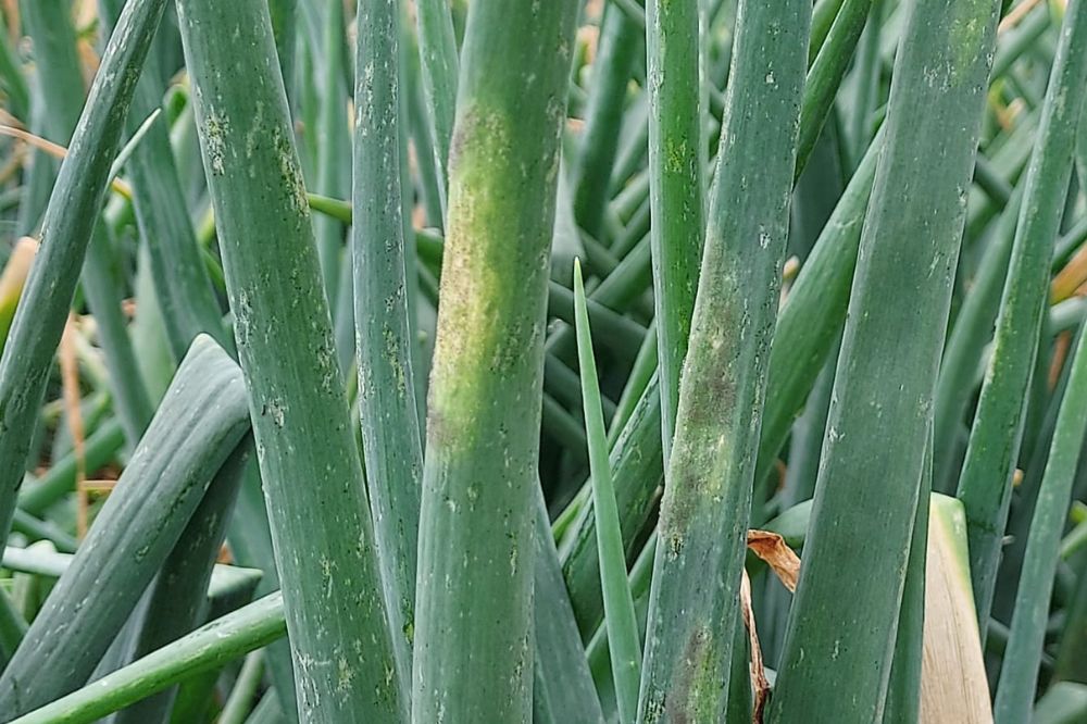 Valse meeldauw is een pseudoschimmel. Deze schimmel wordt veroorzaakt door de oömyceet Peronospora destructor vormt een probleem in uien.