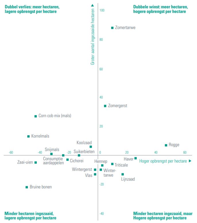 De winnaars en verliezers in akkerbouw, verdeeld over de gewassen