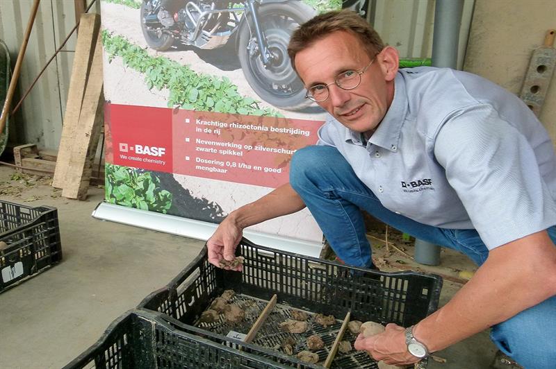 In 2019 waren met Allstar behandelde knollen in 7 van de 10 gevallen verder verrot dan bij het referentiemiddel. Over alle rassen gemiddeld scheelde het een vol punt op een schaal van 1 tot 10. Het verschil in rotting met onbehandelde knollen was minimaal. In 2018 was Allstar bij 8 van de 10 rassen verder verrot dan bij de referentie. Mooie cijfers maar Westhoff blaast liever niet te hoog van de toren. “Het is mooi meegenomen, maar er zijn veel meer factoren die bepalen wanneer je kunt rooien. Ik vind het persoonlijk veel belangrijker dat Allstar goed werkt op rhizoctonia.” Dat laatste lijkt te lukken want in de 6 jaar dat BASF proeven doet met Allstar was het 5 keer beter dan het referentiemiddel.