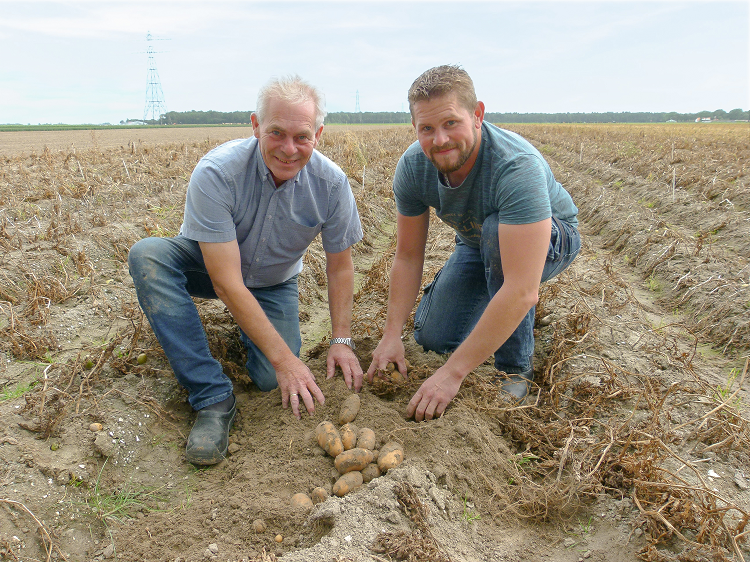 Ondanks al deze voorzorg is de inzet van chemie onmisbaar om het pootgoed te beschermen tegen rhizoctonia. “Klopt, zegt Jan, je moet op deze grondsoort eigenlijk zowel de knol als de grond behandelen. Sinds Allstar er is, gebruiken we dat middel voor de veurbehandeling. Bij de toedekschijven van de plantmachine spuiten we dan nog een tweede middel op de grond. Die aanpak bevalt ons goed.”