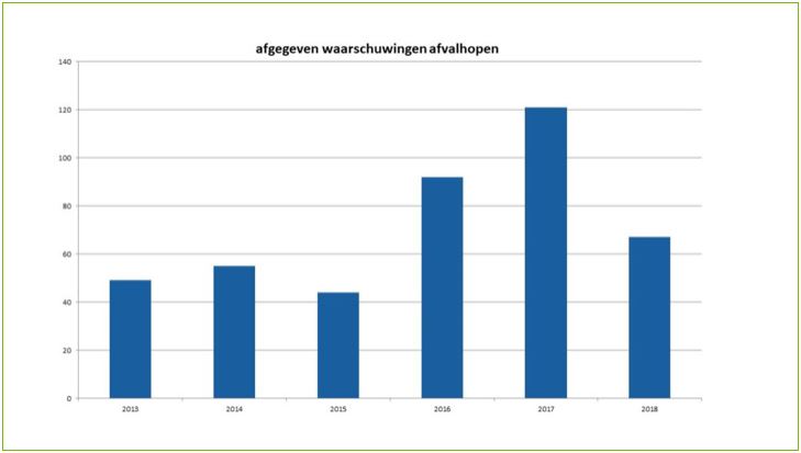 Dit waren er de afgelopen jaren behoorlijk meer, zie de onderstaande grafiek. Door de betreffende telers zijn tijdig maatregelen getroffen waardoor er geen LOD (Last Onder Dwangsom) door de NVWA is opgelegd. De gemaakte afspraken met de NVWA lijken hiermee en goede preventieve werking te hebben.